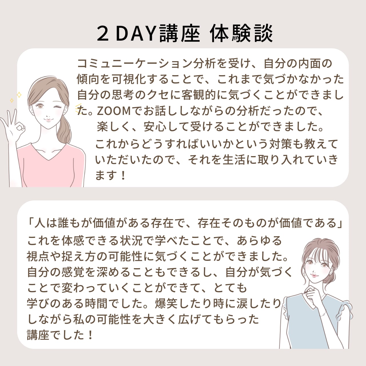 受講者さまご本人のコミュニケーション力強化はもちろん、社内の人材育成にもつなげていただけます。
