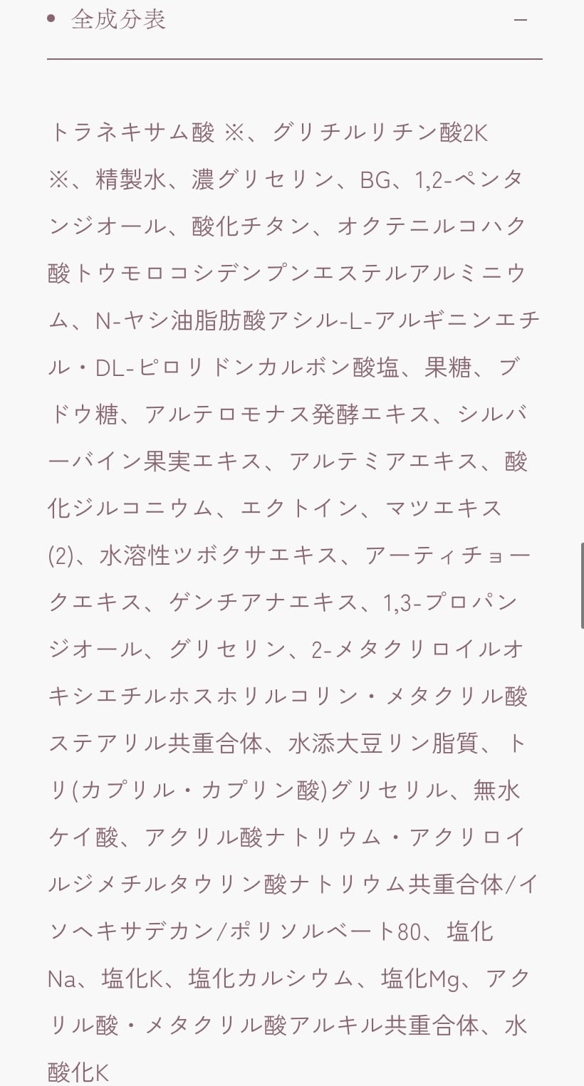 のびが良く素肌と一体化するようになじみ、キメをなめらかに整えます。 有効成分トラネキサム酸、グリチルリチン酸2Kを配合。